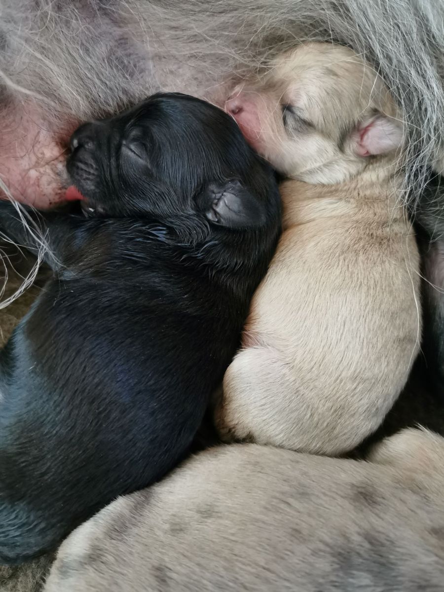 Unsere Hündinnen Gretl, Gabi, Gerti, Gundl und Gisela und unsere Rüden Gustl, Günter und Georg haben alle unterschiedliche Farben und auch die verschieden Charaktere sind schon ein bisschen zu erkennen.